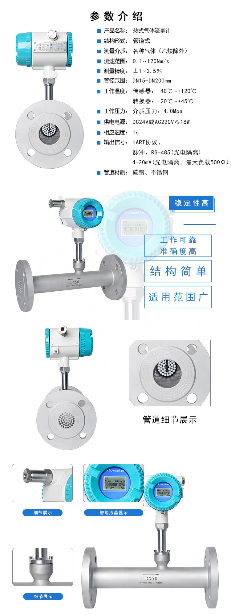 熱式氣體質(zhì)量流量計(jì)是利用熱擴(kuò)散原理測量氣體流量的儀表。傳感器由兩個(gè)基準(zhǔn)級(jí)熱電阻(RTD)組成。一個(gè)是速度傳感器RH,一個(gè)是測量氣體溫度變化的溫度傳感器 RMG。當(dāng)這兩個(gè)RTD置于被測氣體中時(shí),其中傳感器RH被加熱,另一個(gè)傳感器RMG 用于感應(yīng)被測氣體溫度。隨著氣體流速的增加,氣流帶走更多熱量,傳感器RH的溫度下降。