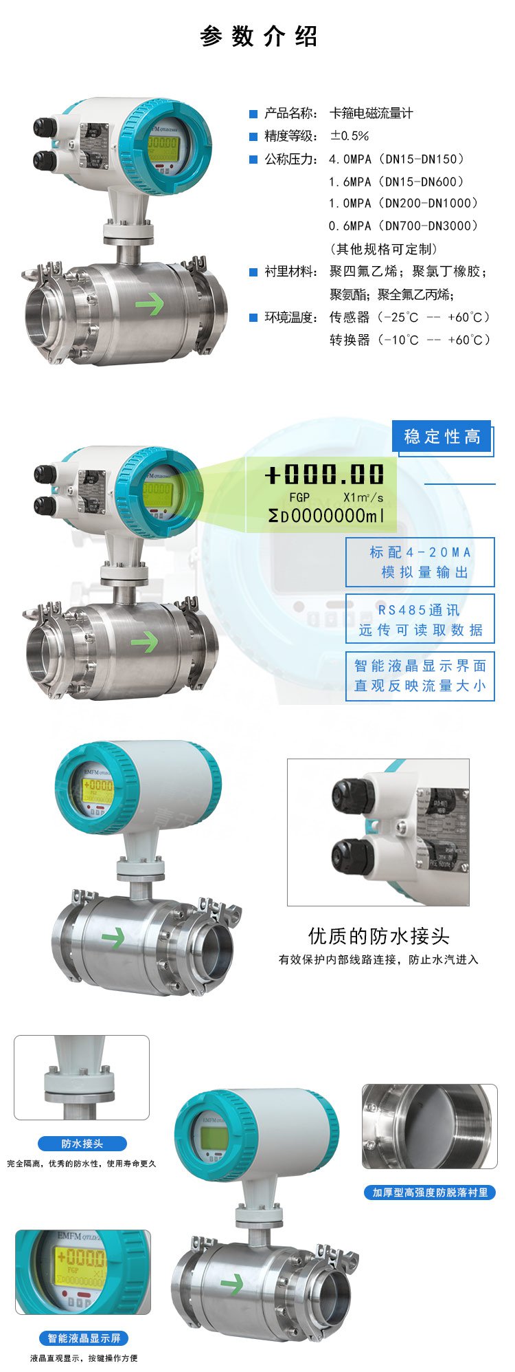 CQTLD電磁流量計(jì)卡箍式安裝方式具有安裝、清洗方便等優(yōu)點(diǎn),常應(yīng)用于食品生產(chǎn)、制藥行業(yè)藥劑測量以及凈水監(jiān)測等場合。
